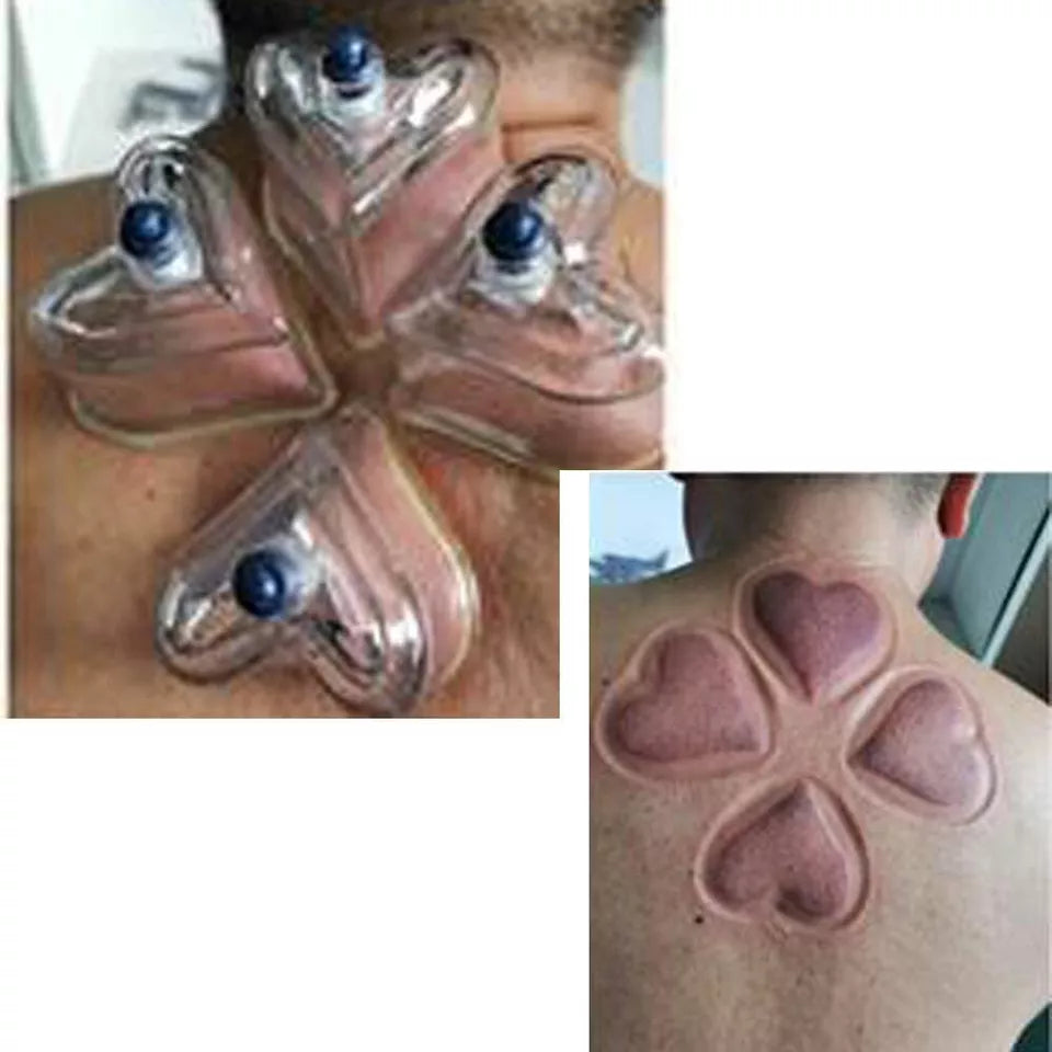 Presenting the 10-piece Heart-Star Shaped Cupping Set - these unique plastic cups leave a distinct heart or star shaped cupping mark rather than a circle and are designed for comfort, ease-of-use, and a smooth glide. They are ideal for self-care and may improve flexibility, reduce anxiety, and ease pain symptoms. One set includes six heart-shaped individual cups, four star-shaped individual cups, and a hand pump.